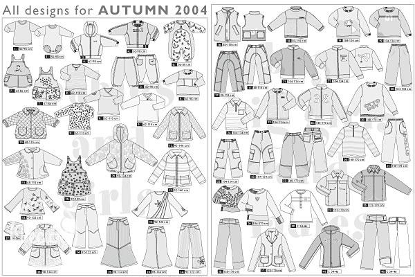 Strihy sú veľkostiach od 56 do 170 cm (deti), oblečenie pre dámy (34-46).
